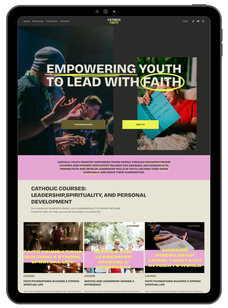 Are you passionate about helping Catholic parishes and youth ministries thrive? Do you have valuable resources, support materials, and ideas that could make a real difference in faith formation and youth ministry programs? The Catholic Youth Squarespace Template is designed specifically for people like you, those ready to build a dynamic platform to offer parishes everything they need to inspire and engage the next generation.